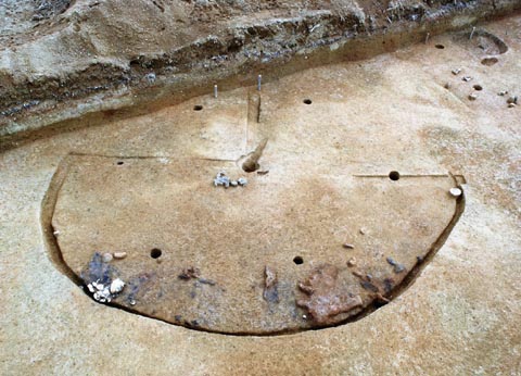 | 遺跡の概要 | 谷山遺跡は標高75m前後の丘陵先端部に立地する高地性集落。発掘調査では、弥生時代後期の竪穴住居7棟、掘立柱建物1棟、土坑1基などが発見された。竪穴住居の形態や規模は様々であったが、6棟が火災によって焼失していた。 |